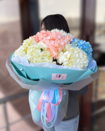8 Роз Мадам Бомбастик, 5 Роз Мемори Лейн, 3 Розы Мента, 2 Ранункулюса Клуни
