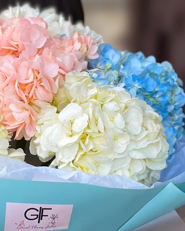 3 Георгины Лайт Визард, 3 Эустомы Алиса Вайт, 5 Роз Кахала