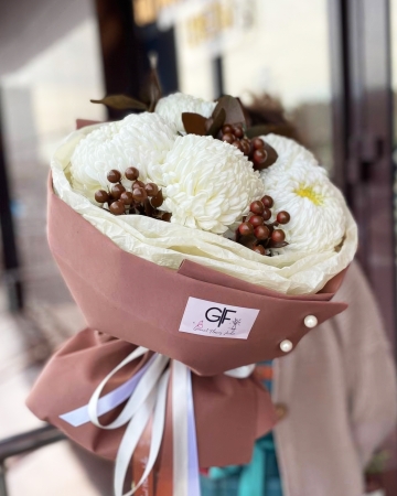 5 Хризантем Бигуди Шоколад, 2 Розы Шиммер