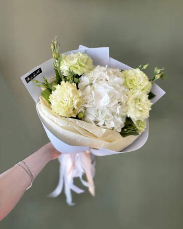 3 Эустомы Алиса Вайт, 1 Гортензия