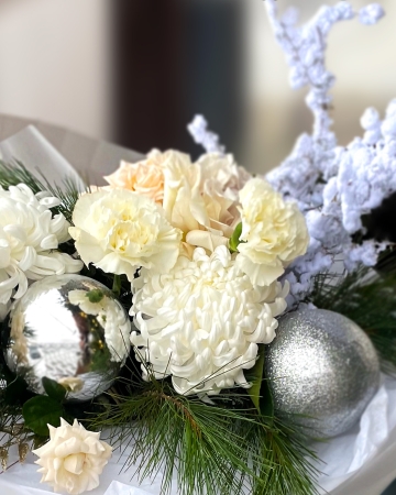 3 Хризантемы Фрэд, 2 Гвоздики Диантус Леди Диана, 6 Роз Мисс Бомбастик
