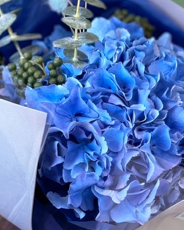1 Гортензия, 1 Эустома Алиса Вайт, 1 Роза Беларусь