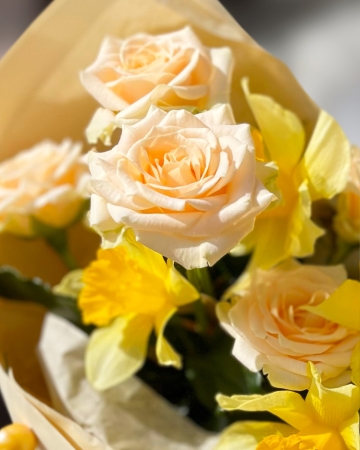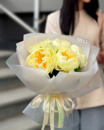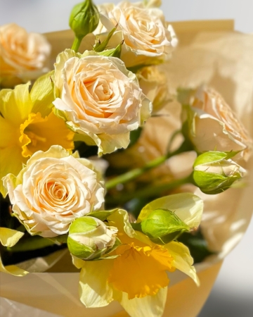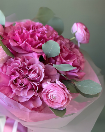 4 Ранункулюса Элеганс, 3 Розы Кантри Блюз