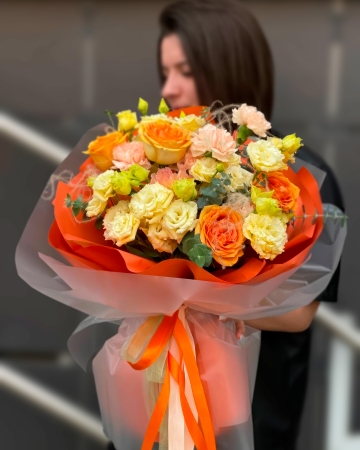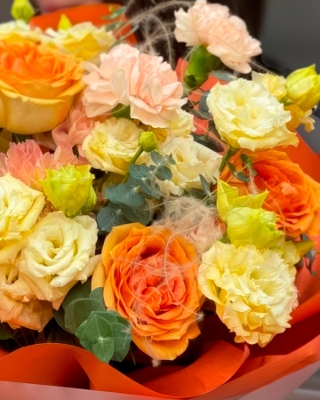 2 Хризантемы Бигуди Пепл, 4 Розы Мемори Лейн, 3 Розы Мадам Бомбастик, 6 Роз Мисти Баблз